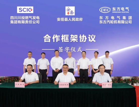 6月16日,東方電氣集團(tuán)所屬東方汽輪機(jī)、安岳縣人民政府、四川川投燃?xì)獍l(fā)電集團(tuán)有限責(zé)任公司簽署三方合作框架協(xié)議。東方電氣集團(tuán)總經(jīng)理、黨組副書記張彥軍,資陽市人民政府副市長李發(fā)剛,四川能源發(fā)展集團(tuán)黨委委員、副董事長李文志出席簽字儀式,集團(tuán)公司黨組成員、副總經(jīng)理李建華參加活動。